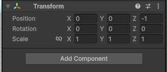 子のPositionは親からの相対位置になるので、親の中心点からZ軸で-1のところに設定しておきます。